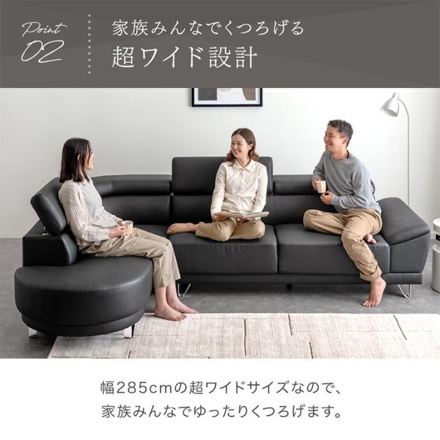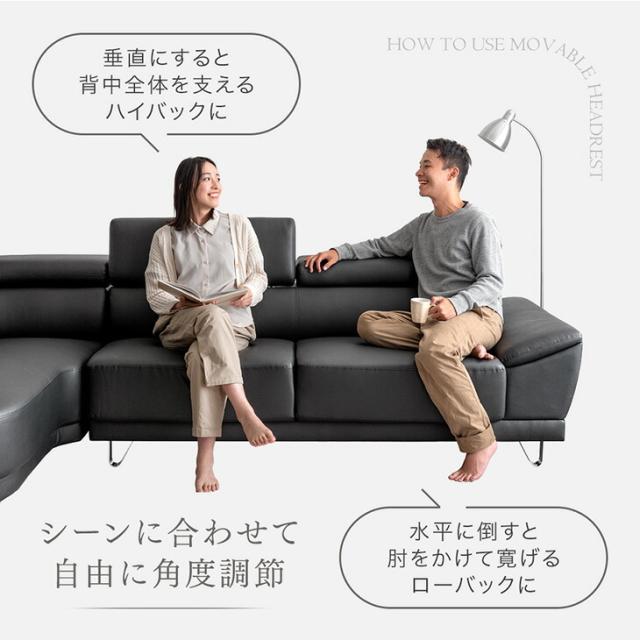 カウチソファ ヘッドレスト 6段階 4人掛け 3人掛け ソファ コーナーソファ カウチ コーナー L字 大きい ワイド ハイバック 3人 4人 ソフトレザー pvc ファブリック sofa 黒 ブラック グレー モダン 北欧 おしゃれ 【超大型】【後払/時間指定NG】