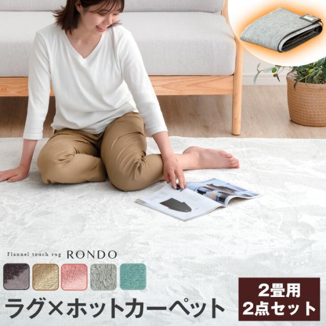 ラグ ホットカーペット 2点セット 185×185 2畳 滑り止め マイクロファイバー 洗える フランネル カーペット 冬 セット 正方形 ホットカーペットカバー 北欧 【商品番号:21700005】