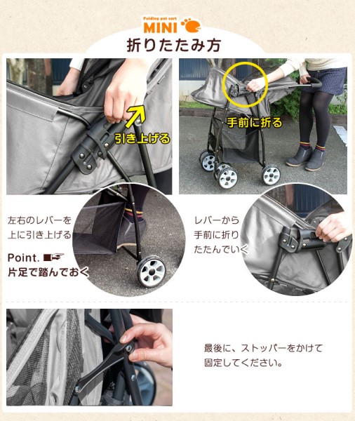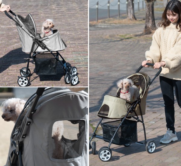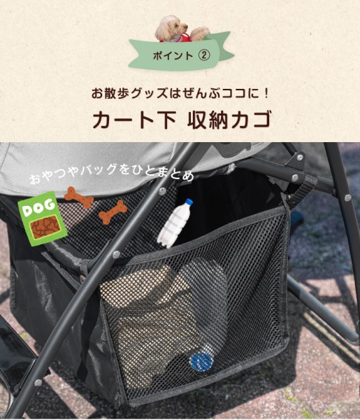 ペットカート 手荷物を入れる収納カゴ付き折りたたみ 4輪 ミニ 多頭 小型犬 ペットバギー 猫 ドッグカート ブレーキ