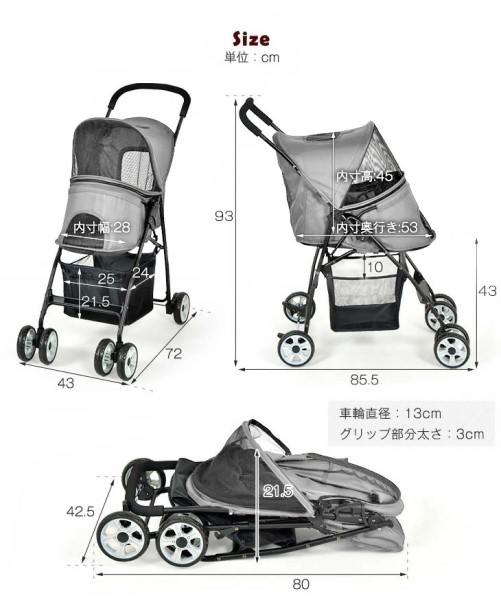 - 2キロのチワワなのでコンパクトで軽量なものを探していました。 開くのも畳むのも非力なオバサンでも簡単でしたし、162センチの私が押すのに丁度よい高さでした。 組み立て不要で開封後すぐ使えるのもありがた...