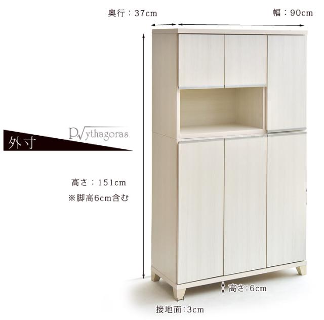 【正午〜P5%還元】 シューズボックス 完成品 国産 幅90 ハイタイプ 90×151 大川家具 収納 靴入れ 可動棚 靴箱 玄関収納 下駄箱 シューズラック [超大型商品]