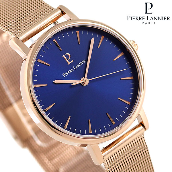 正規品 ピエールラニエ シンフォニー 33mm フランス製 クオーツ レディース 腕時計 P091L968 Pierre Lannier SYMPHONY アナログ ブルー×ピンクゴールド ◆ピエール・ラニエ社は、1977年にフランス、ストラスブルグ市近郊に創設されました。「常に時代の最先端を駆けるファッション性の高い時計作り」をコンセプトに、多くのファンを魅了しています。 シンプルなデザインが特徴のモデル。スライド式のベルトは、ご自分でのベルト調節が可能です。また、ベルト裏面のつまみのついたバネ棒をスライドさせるだけの操作でバンドの取り外し、取り付けが簡単に行えます。気分や服装にあわせてお手持ちのベルトと付け替え、お楽しみいただけます。