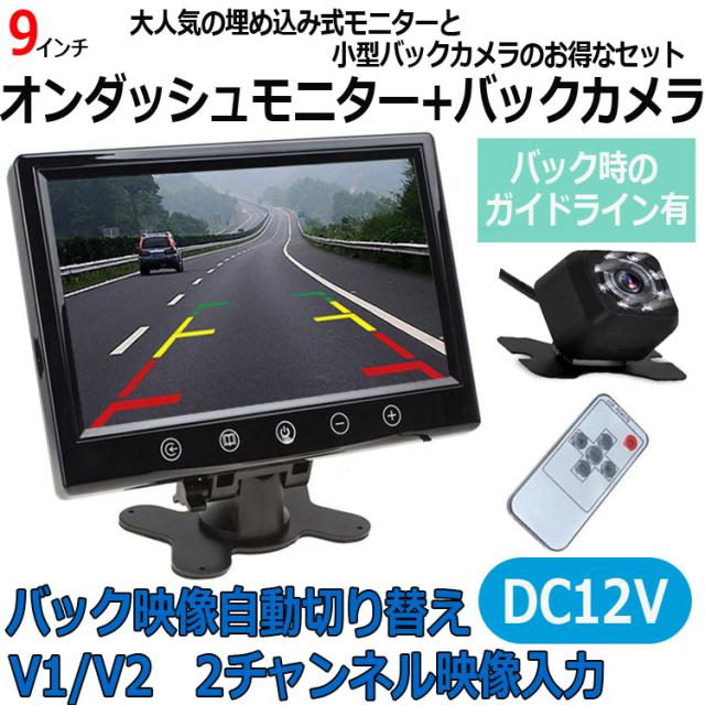 バックカメラセット 9インチオンダッシュ液晶リモコン切り替え可能 12V専用 42万画素 広角レンズバックカメラ CMN90A0130N
