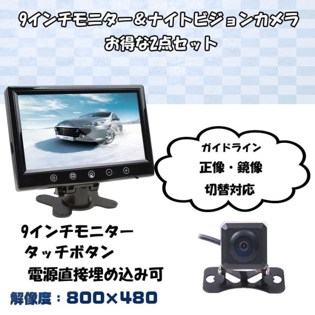 9インチバックカメラセット 9インチ大画面オンダッシュモニター 12V専用 ガイドライン切替可能 広角防水バックカメラ CMN90A206C