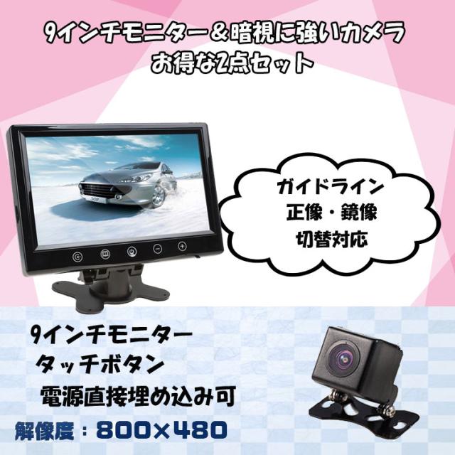 9インチバックカメラセット オンダッシュ車載モニター リモコン切替 12V車専用 ガイドラインバックカメラセット CMN90B021