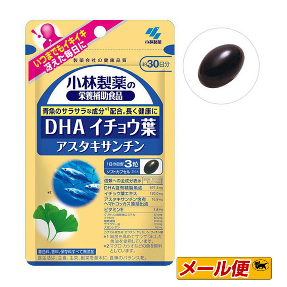 【1個までネコポス配送可】小林製薬 DHA イチョウ葉 アスタキサンチン 90粒 栄養補助食品