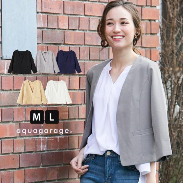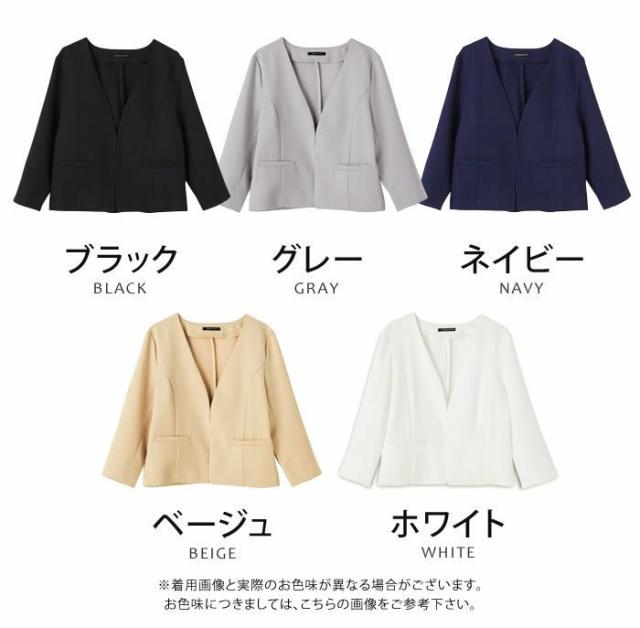 ≪ゆうメール便配送10・代引不可≫ ノーカラージャケット レディース ブラック グレー ホワイト ネイビー ベージュ M L 薄手 フォーマル