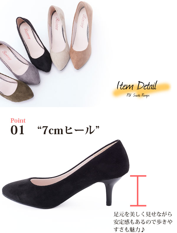 | 商品説明 | 美脚と歩きやすさの両方を叶える、「走れる」パンプスです♪ ヒールの高さは約7cm。見た目よりも安定感があり歩きやすく、足を綺麗に見せてくれます。 素材は上質なスエード調。ベーシックなフォルムと豊富なカラーバリエーションで、コーディネイトに合わせやすく日常使いにもぴったりです! |