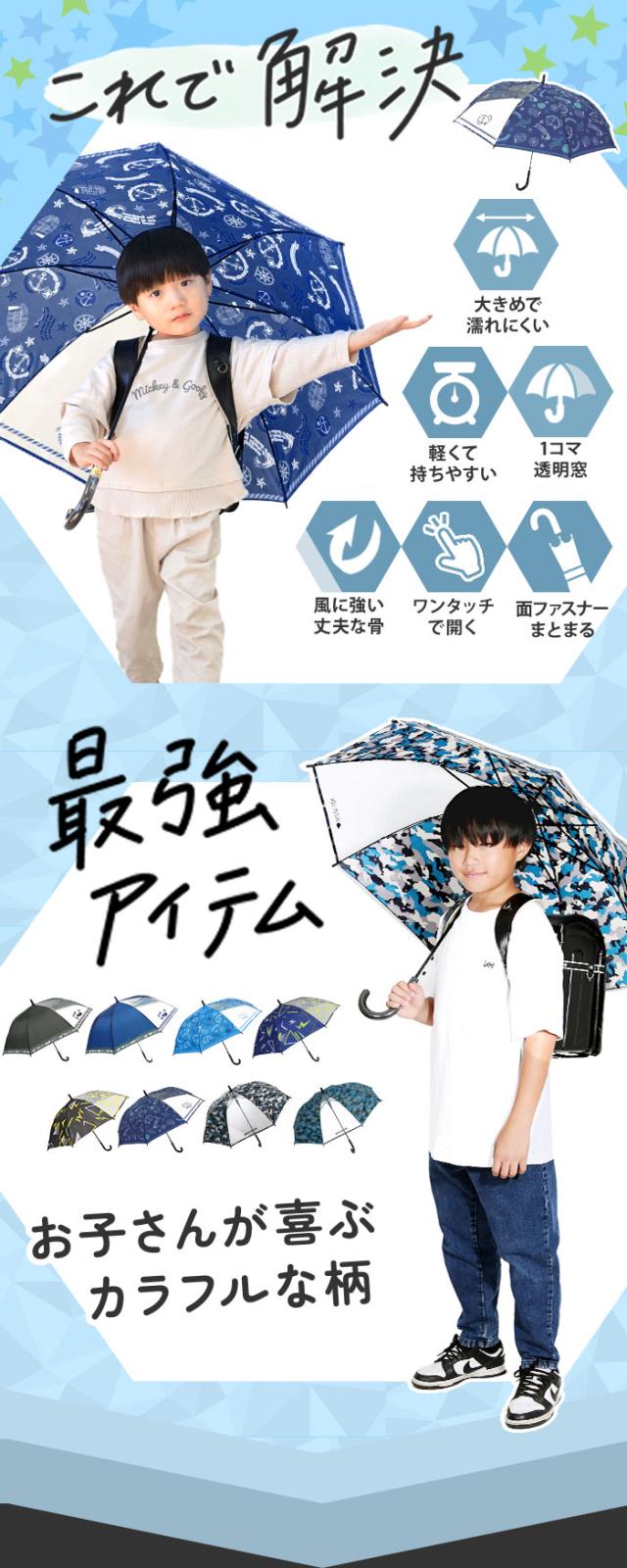 子供傘 55センチ 通販 傘 子供 55cm ジャンプ傘 キッズ 子ども 男の子 1コマ 透明窓付き こども傘 長傘 子供用 ワンタッチ 丈夫 折れにくい グライファイバー骨 かっこいい 雨傘