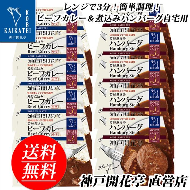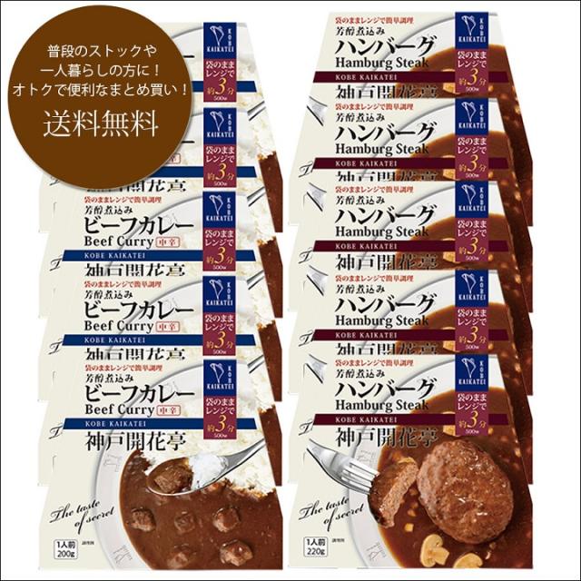 レトルト食品 詰め合わせ レトルトカレー 中辛 ハンバーグ 10食 レトルト おかず 惣菜 食品 まとめ買い セット 神戸開花亭 母の日 父の日 お歳暮 お中元 お年賀 2026 常温保存 のし・包装不可 送料無料 福袋 ポイント消化