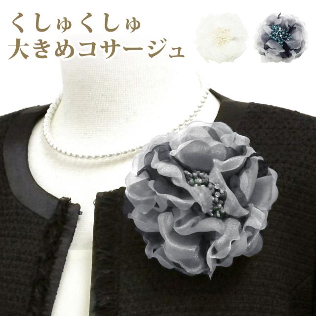 コサージュ 大きめ 11cm 透け感がキレイ くしゅくしゅ オーガンジー ボリューム感 ラメ花芯&ラインストーン 9d レディース フォーマル 結婚式 入学式 卒業式 スーツ ママ 幼稚園 小学校 母親 発表会 お洒落 ブローチ 合唱 コーラス 衣装 プレゼント 即納