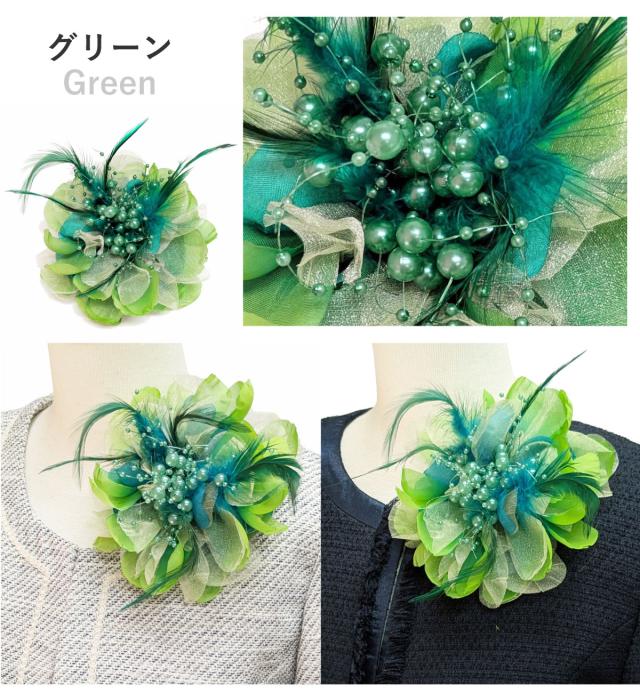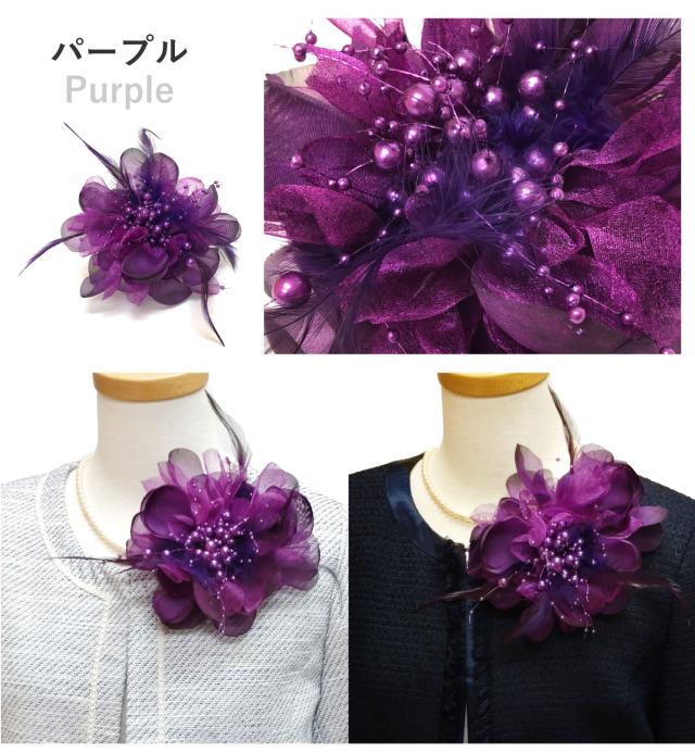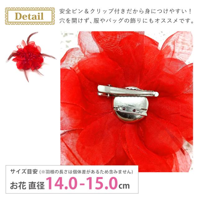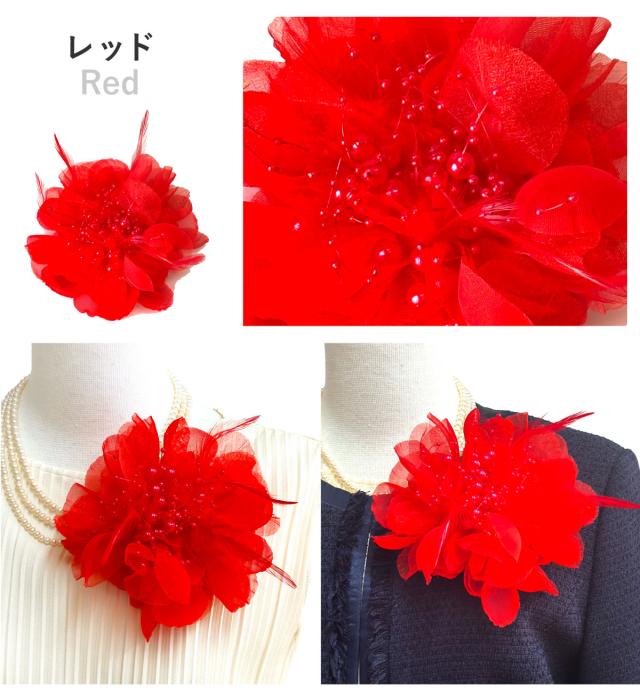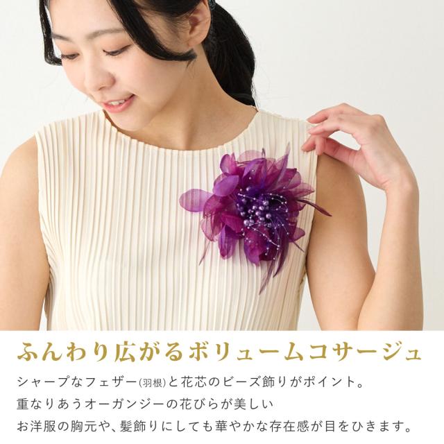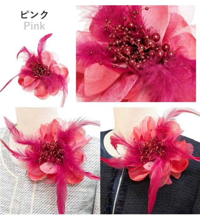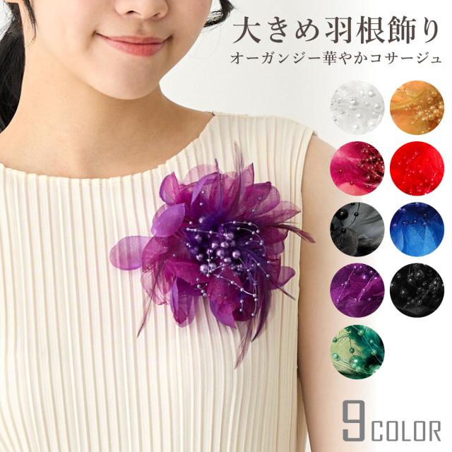 華やか 大きめ フェザーコサージュ オーガンジー 羽根&パールビーズ飾り 9e 大きいサイズ BIG レディース 入学式 卒業式 フォーマル 入園式 スーツ 結婚式 ママ 発表会 幼稚園 小学校 お洒落 エレガント 舞台 コーラス 衣装 プレゼント 即納【メール便送料無料】