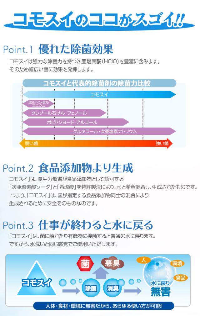 ■コモスイ成分■次亜塩素酸ソーダ・希塩酸・水