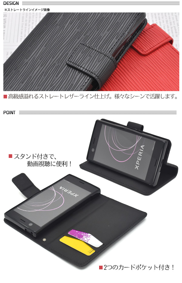スマホケース 手帳型 Xperia XZ1 Compact SO-02K用 ストレートレザーデザイン 携帯カバー シンプル クール スマホカバー エクスペリアXZ1コンパクトSO-02K用 携帯ケース スマートフォンケース 落ち着いたデザイン ビジネススタイル