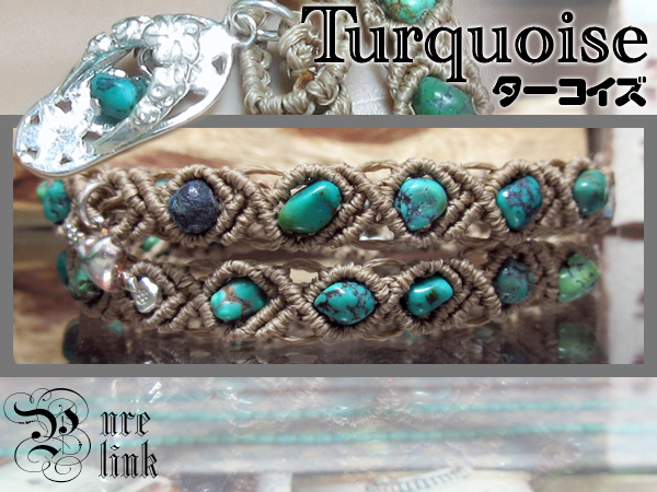 『ターコイズ・トルコ』シルバー925チャームマクラメ編2連ブレス
