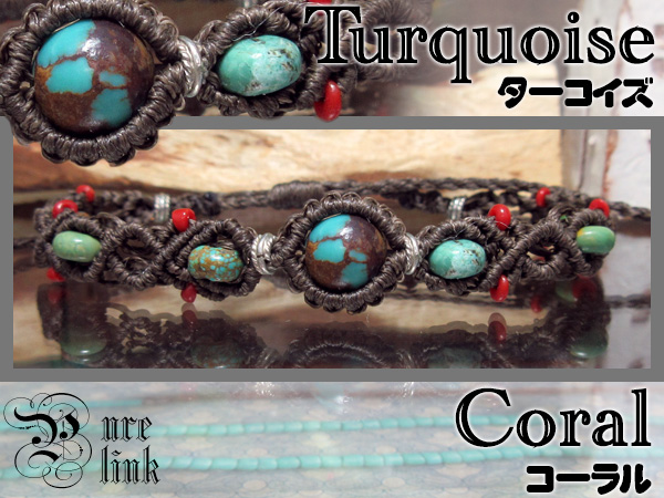 『ターコイズ・トルコ』山珊瑚マクラメ編ハンドメイドブレス2