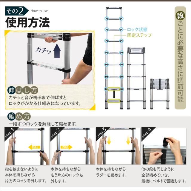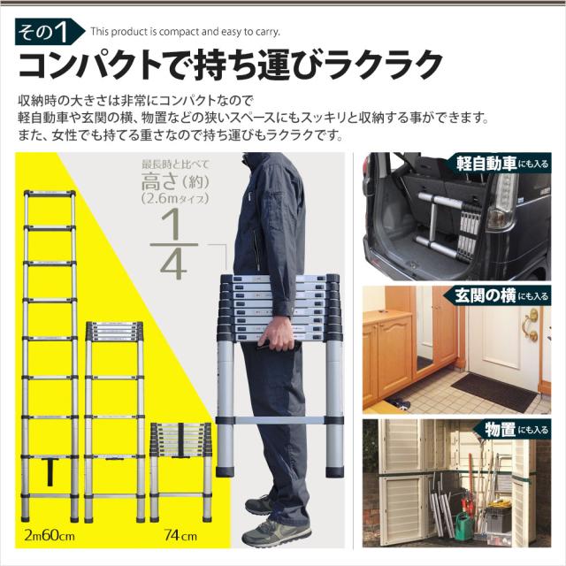アルミ製 伸縮はしご 安全ロック搭載モデル 2.6m