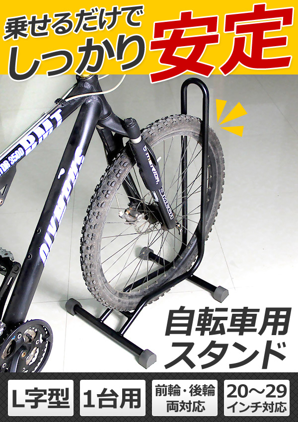 | 自転車スタンド 今流行のサイクリング♪ 最近は通勤や通学、又は新人歓迎会にサイクリングを したりと空前の自転車ブームが起きてます。 テレビ番組も増えましたね。 さてそんな人気の自転車パーツに新商品、自転車スタンドが入荷致しました。 前輪をカバーすることで、抜群の安定感を実現。 また本体に適度な重量をもたせ、ぐらつきを抑えます。 スタンドがないスポーツサイクルなども安心して収納できるのがポイント。 スタンドがある自転車、ない自転車両方に対応できるから自転車が変わっても大丈夫。 長く使えるのが嬉しい自転車ラックです。 【商品詳細】 自転車スタンド本体 サイズ:幅65mm×高さ760×奥行410cm 適応サイズ:20〜29インチ 材質:スチール製 |