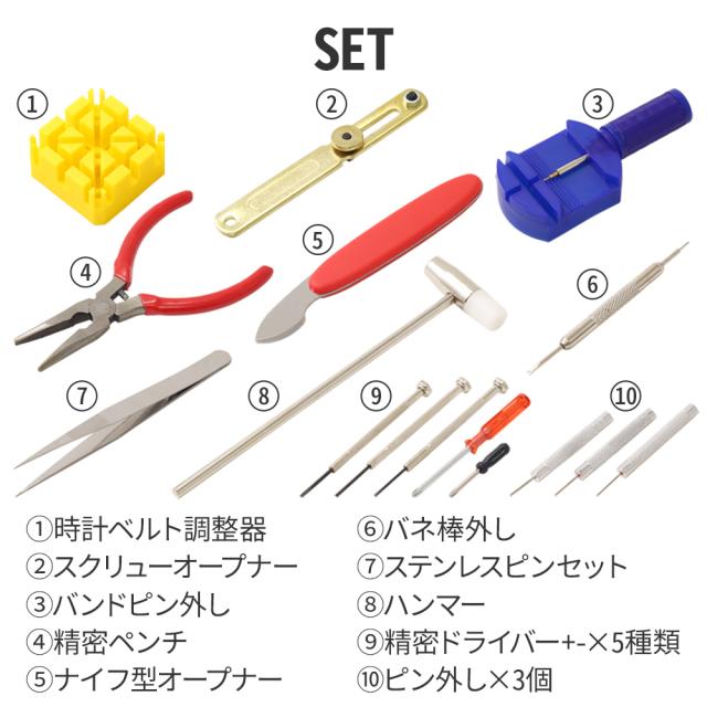 初心者 腕時計用工具 セット ツール バネ棒外し ウォッチツール 裏蓋 閉め 工具 こじあけ バンド ベルト 調整 調節 バネ棒外し 裏蓋はずし 裏ふた コマ外し ピン外し コマはずし ピンはずし コマ抜き ピン抜き メンテナンス