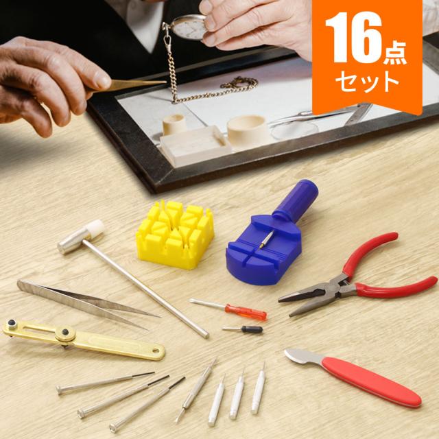 時計修理工具 16点セット 腕時計 修理 工具 バネ棒外し 電池交換 裏蓋 閉め バンド ベルト 調整 調節