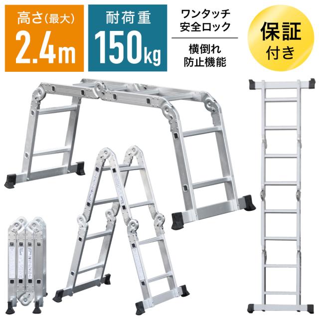 最大 2.4m はしご 脚立 梯子 アルミ製 保証あり 安全ロック 滑り止めスタンド 付属 兼用脚立 2段 多機能