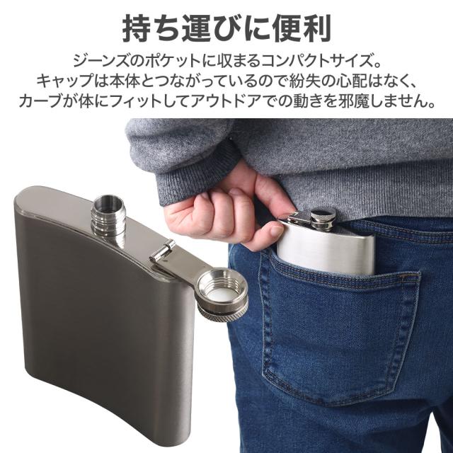 スキットル ステンレス ウィスキー容器 ボトル お酒 飲み物 水筒 アウトドア キャンプ 山登り 登山 水分補給 キャップと一体 キャップと一体型 7oz 相当 漏斗付き ジョウゴ ジョウゴ付き プレゼント ギフト お祝い 父の日 母の日 敬老の日 0.2L
