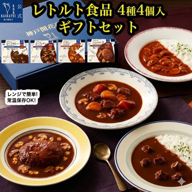 レトルト食品 詰め合わせ ギフト ハンバーグ カレー ビーフシチュー ハヤシ 4種8食 セット 送料無料 一部除く 神戸開花亭 洋食 惣菜 常温保存 レンジ対応 温めるだけ 食品ギフト 内祝い 御祝 出産祝い 快気祝い お返し 贈答用 保存食 備蓄