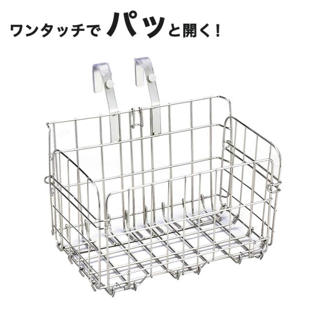 自転車 前カゴ 折り畳み式バスケット ステンレス製 SOT-20 センタン工業の解説>