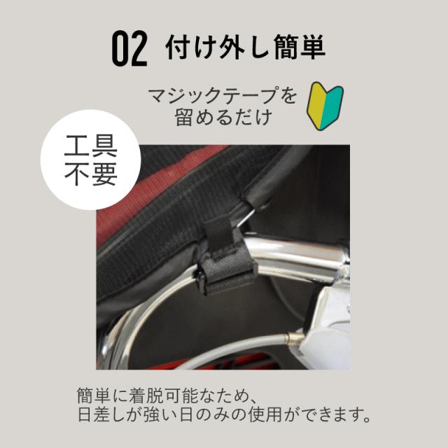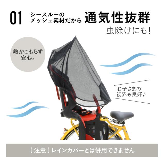 ・約60%の透過紫外線カット、お子様を日差しから守り日焼け防止ができる自転車用幼児座席専用の紫外線防止の日除けカバーです。