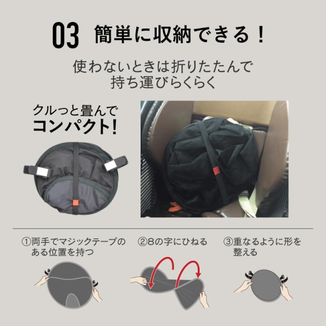 ・マジックテープで子乗せへの着脱は簡単、折りたたんでコンパクトに持ち運べます。