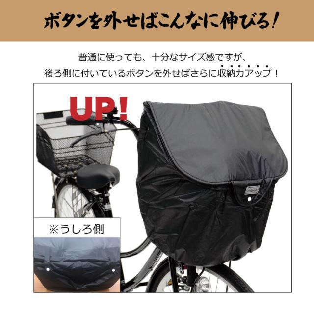 大型のフロントカゴに対応 ・ボタンを外すと大容量・装着も簡単・撥水加工済みで中が濡れない |
