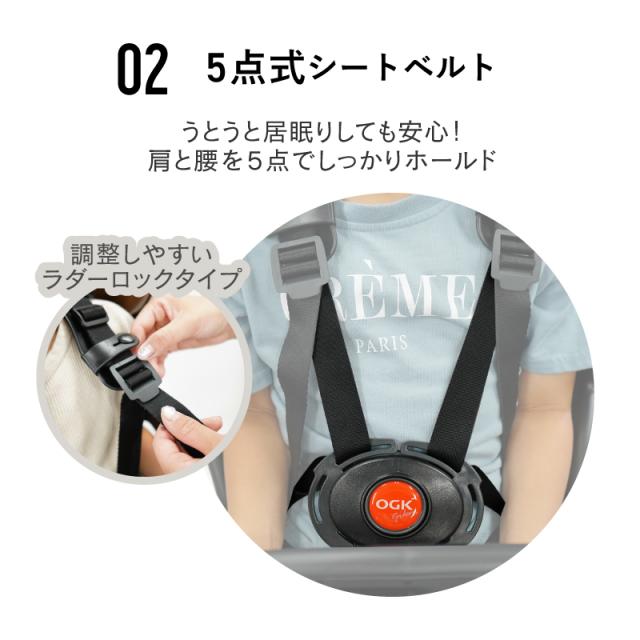 ・調整しやすいラダーロックタイプの5点式シートベルト