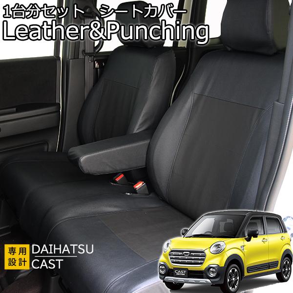 ダイハツ キャスト シートカバー レザー&パンチング ブラック 1台分セット