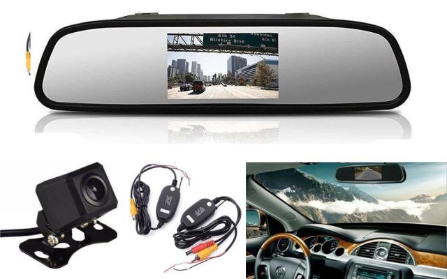 4.3インチルームミラーモニター+CCDバックカメラ+ワイヤレスビデオキット3点セット 映像2チャンネル 12V専用 正像鏡像切替 RM43A206VTM50
