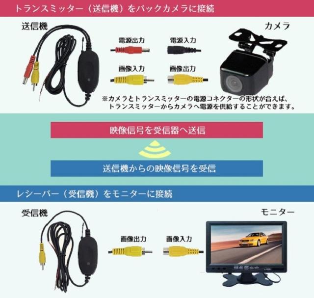 ・車用バックカメラや防犯カメラなどの映像をワイヤレスでモニターへ映し出すビデオトランスミッターです。