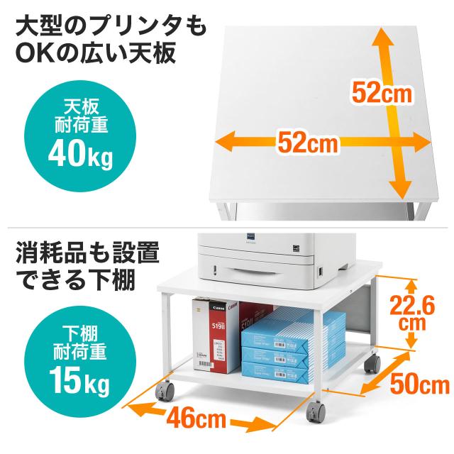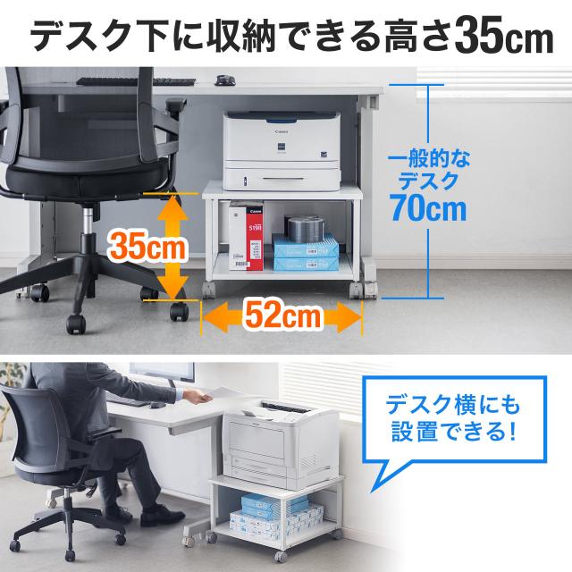 キャスター付き プリンター台 2段 高さ35cm 幅52cm 奥行52cm[100-LPS010]