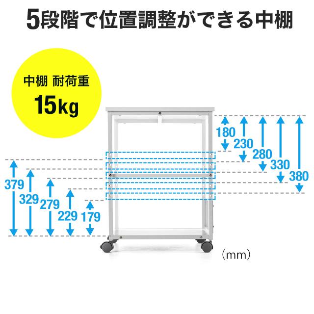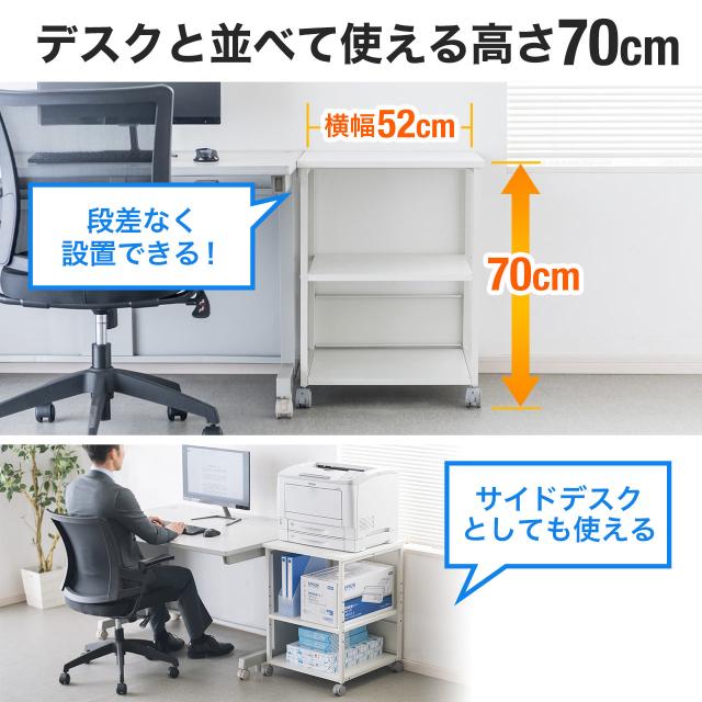 キャスター付き プリンター台 3段 高さ70cm 幅52cm 奥行52cm[100-LPS011]