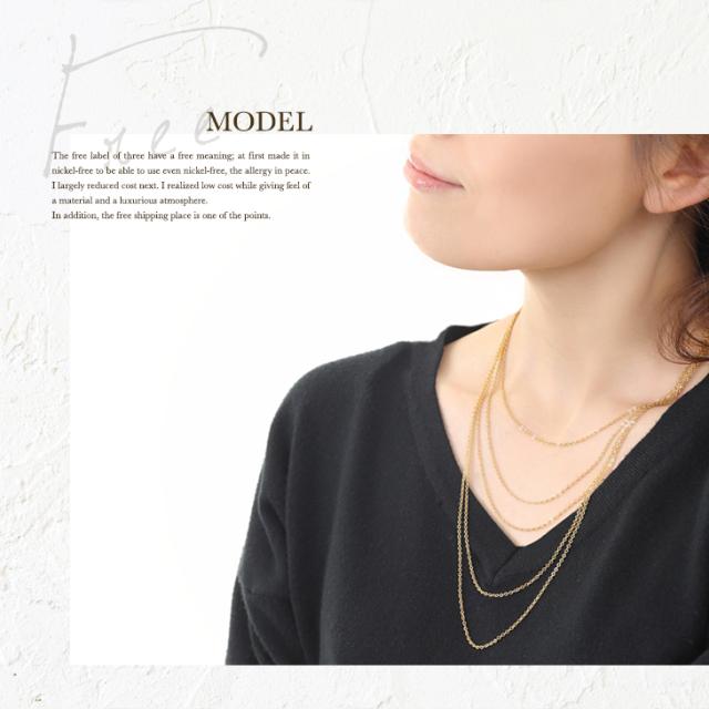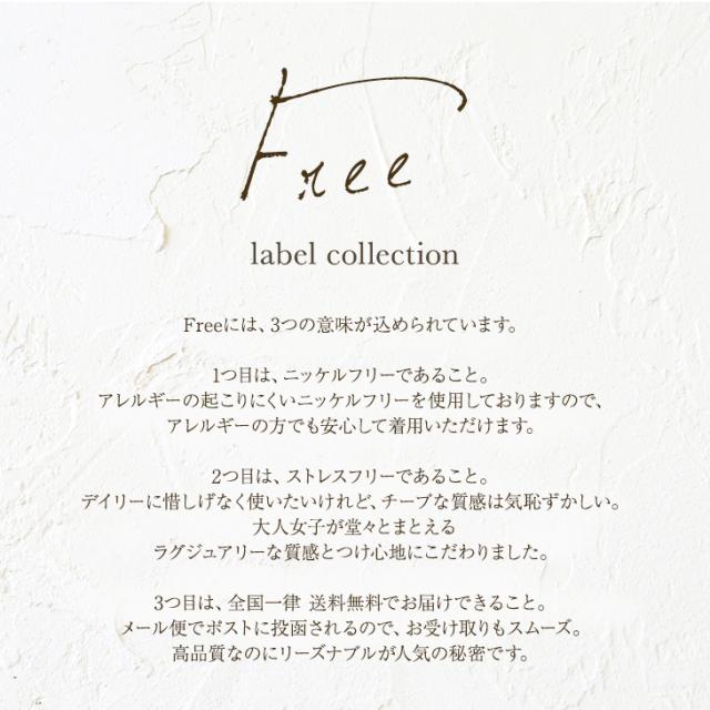 3つの意味が込められたFree一つ目は、ニッケルフリーであること。アレルギーの起こりにくいニッケルフリーを使用しておりますので、アレルギーの方でも安心して着用いただけます。2つ目は、ストレスーフリーであること。デイリーに惜しげなく使いたいけれど、チープな質感は恥ずかしい。大人女子が堂々と纏えるラグジュアリーな質感とつけ心地にこだわりました。3つ目は、全国一律送料無料でお届けできること。メール便でポストに投函されるので、お受け取りも楽チン。高品質なのにリーズナブルが人気の秘密です。《安心の満足保証制度有り》素材:真鍮(ニッケルフリーコーティング)サイズ全長:約91cm*こちらの商品はオーガンジーポーチに入れた簡易包装による「メール便」配送となります。ジュエリーボックス等は付帯しておりませんのでご了承下さい。またメール便配送のため、代引きやギフト包装を承る事もできません。配送方法の欄で宅急便のご指定を頂いた場合でも、全てメール便での配送となりますので予めご了承願います。