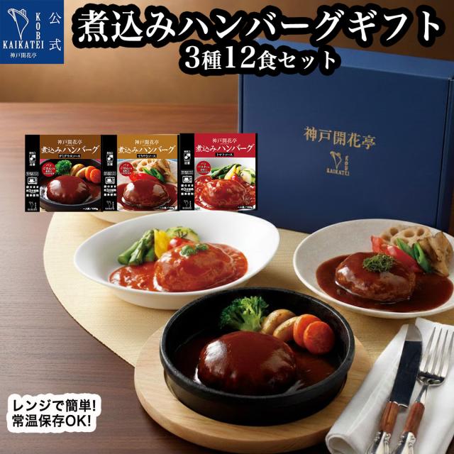 レトルト食品 ギフト 詰め合わせ 煮込みハンバーグ 3種12個入り 常温保存 化粧箱入り 送料無料 レトルト 惣菜 おかず 常温保存 保存食 非常食 備蓄 レンジ対応 一人暮らし 単身赴任 洋食 煮込み 御祝 快気祝い 出産祝い 内祝い 贈答用