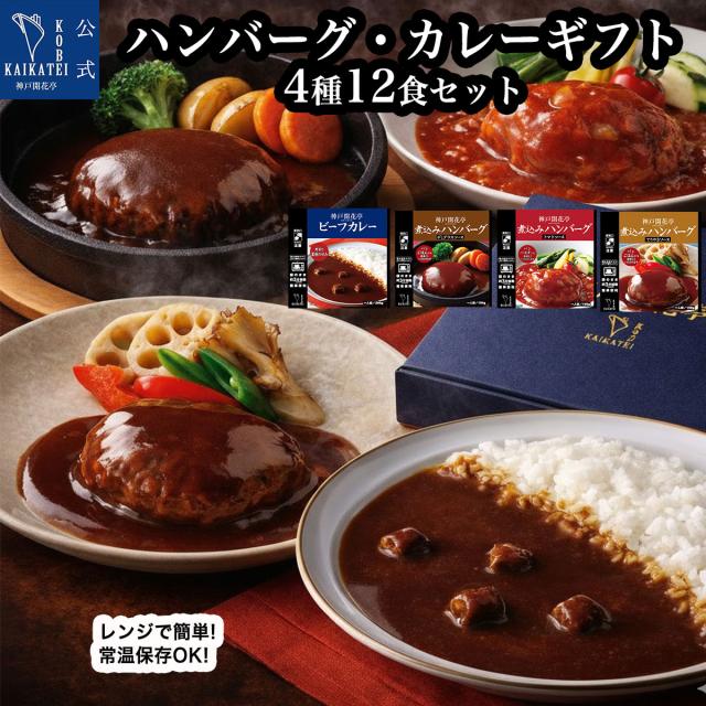 レトルト食品 詰め合わせ ギフト ハンバーグ ビーフカレー 4種12食入 セット 送料無料 神戸開花亭 レトルト 惣菜 おかず 常温保存 保存食 非常食 備蓄 レンジ対応 一人暮らし 単身赴任 洋食 煮込み 御祝 快気祝い 出産祝い 内祝い 贈答用