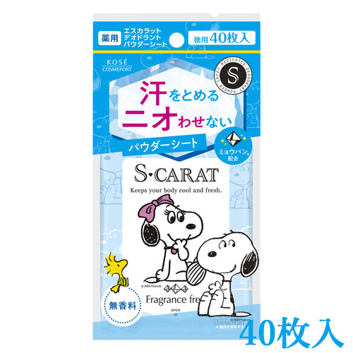 エスカラット スヌーピー 薬用デオドラント パウダーシート 無香料 40枚入 汗拭きシート 制汗シート S-CARAT コーセーコスメポート(KOSE COSMEPORT)