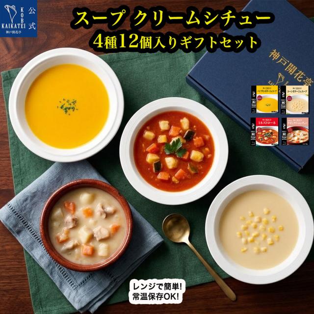 レトルト食品 詰め合わせ ギフト スープ クリームシチュー 4種12食 セット 神戸開花亭 レトルト 惣菜 おかず 常温保存 保存食 非常食 備蓄 レンジ対応 一人暮らし 単身赴任 洋食 高級 御祝 快気祝い 出産祝い 内祝い 贈答用 送料無料