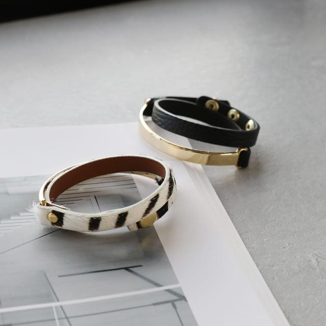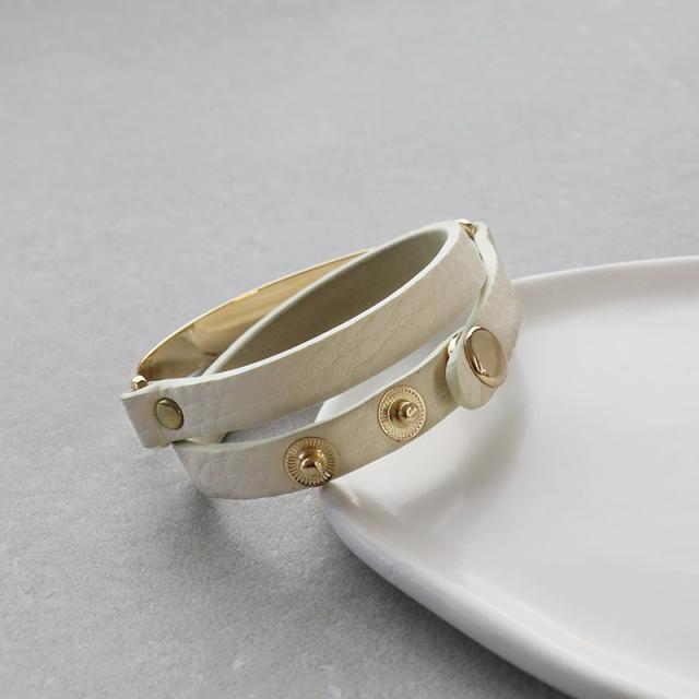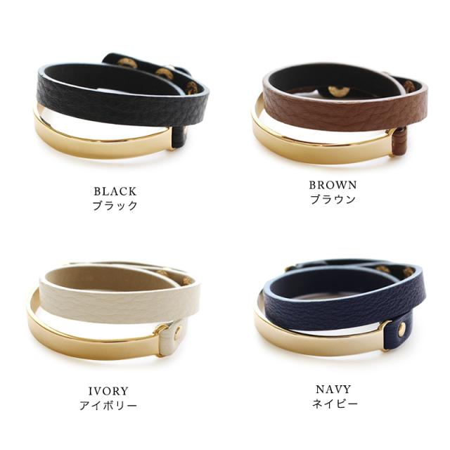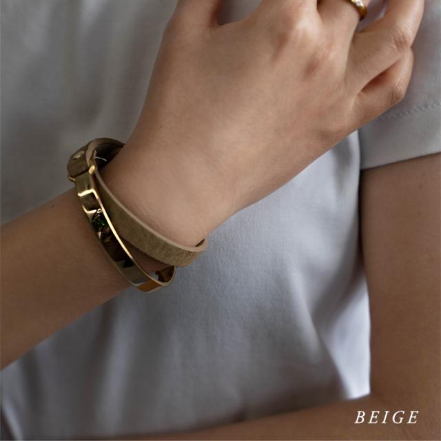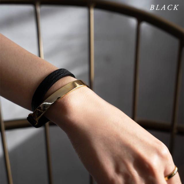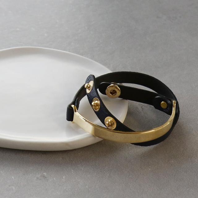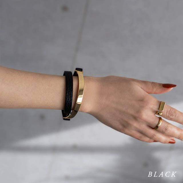 | ゴールドのメタルバングルと本革レザーを合わせた2連ブレスレットです。 大人っぽいクールな雰囲気のデザインが手元にアクセントを加えてくれます。 シンプルなデザインなので、カジュアルにもキレイめにも合わせやすく、 手持ちのブレスレットとの重ね付けなど、アレンジを加えてもおすすめ! | |