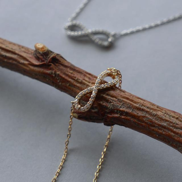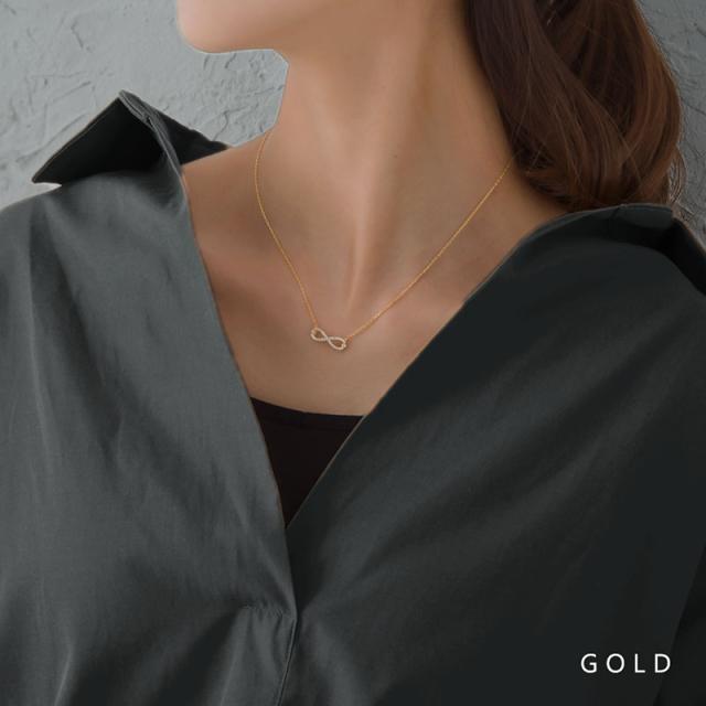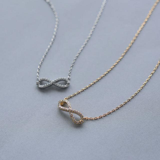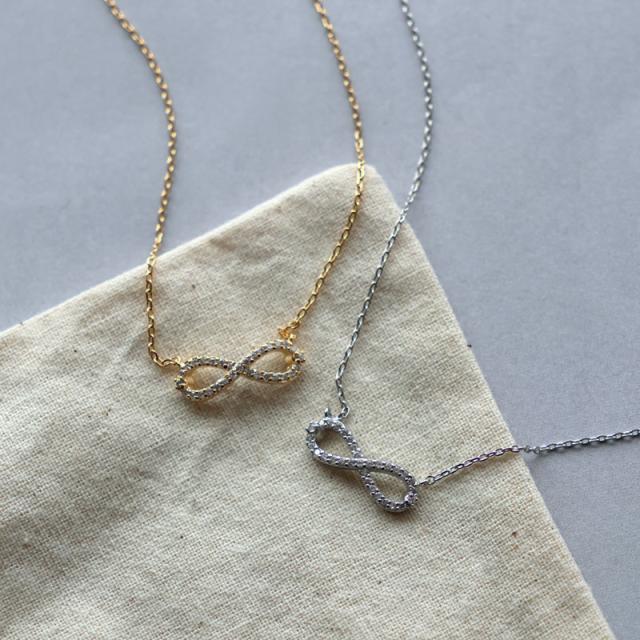 永遠という意味を持つ人気のインフィニティ∞モチーフのショートネックレスです。