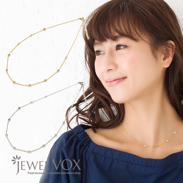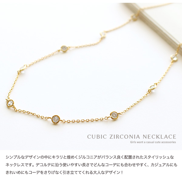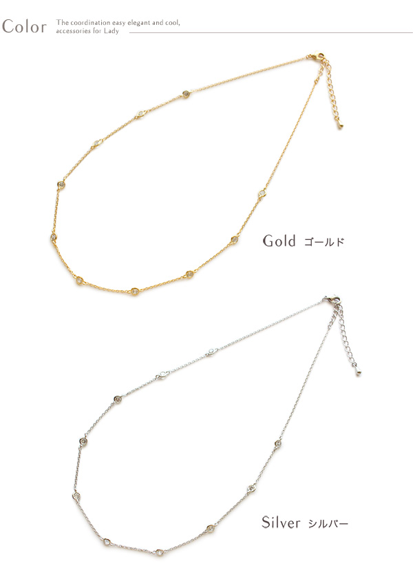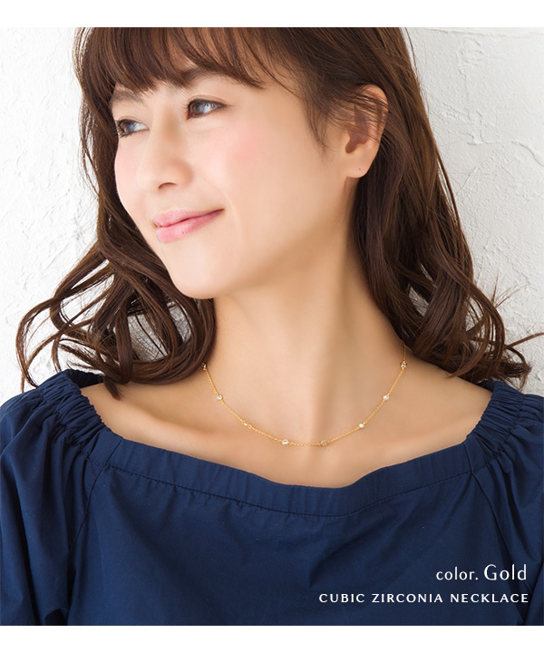 ネックレス レディース ショート キュービックジルコニア ステーション 金属アレルギー ニッケルフリー