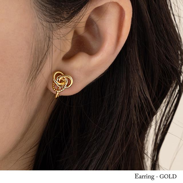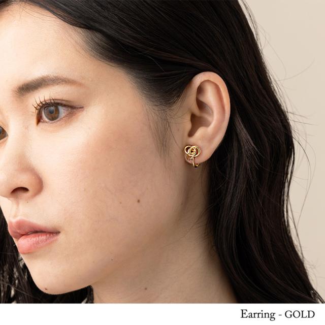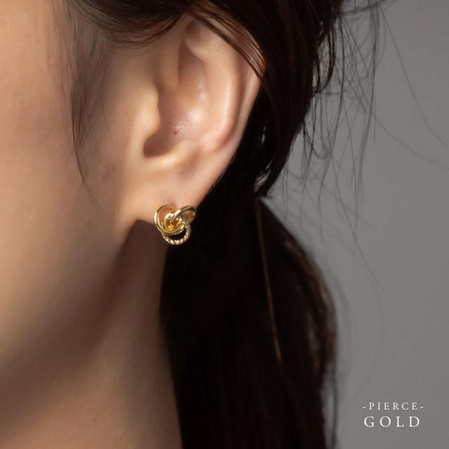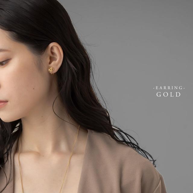 | 輪っかを一つにまとめて捻ったように見える斬新なデザインのピアスです。 コロンとしたフォルムが耳元で上品に存在感を放ちます♪♪ オールシーズン使えて、シーンを選ばないデザインなのでギフトとしても喜ばれそうです!