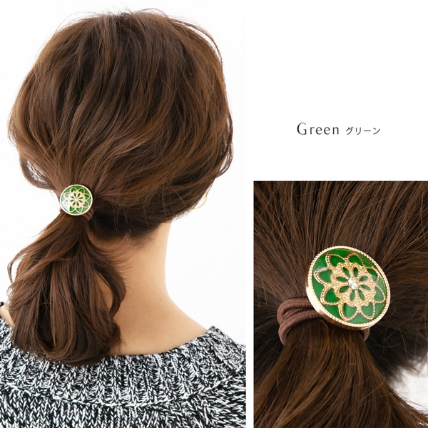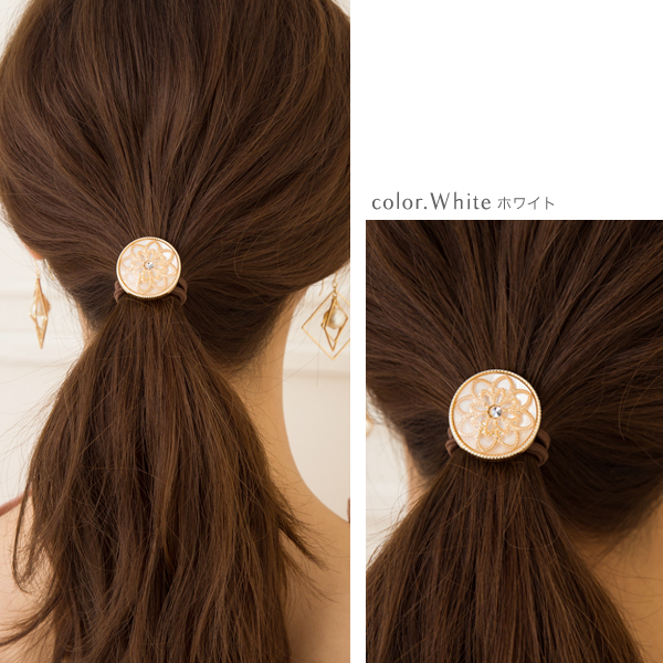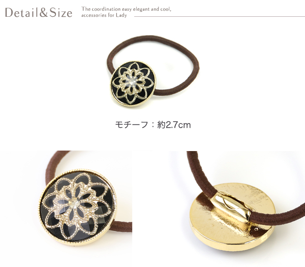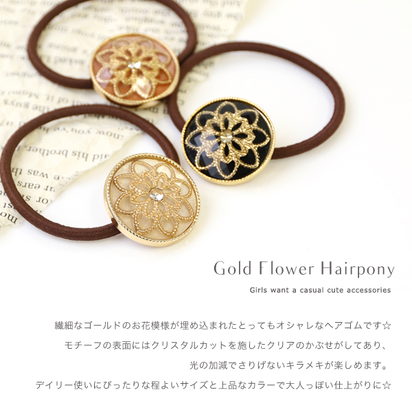 ヘアゴム ラインストーン入り ゴールドフラワーモチーフ ヘアポニー