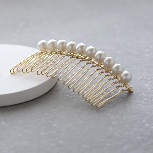 | 同じ大きさのパールば並んだシンプルな夜会巻コーム☆ 櫛が短めなので、アップした髪に差し込んだり、お団子ヘアのアクセントにぴったり♪ シンプルなデザインで小ぶりサイズなのでデイリーユースにおすすめです! | |