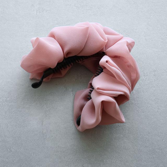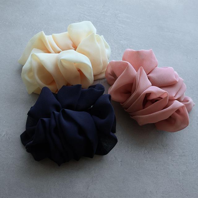 透け感のあるシフォンのような素材でドレープを作りボリュームたっぷりに仕上げたバナナクリップです。
