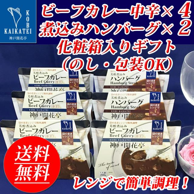 レトルト食品 詰め合わせ レトルトカレー 中辛 ハンバーグ 6食入 ギフト レトルト 惣菜 おかず 神戸開花亭 送料無料 一部地域は追加送料あり お歳暮 お中元 内祝い 出産 快気祝い お年賀 福袋 高級 温めるだけ レンジ対応 湯煎 福袋 ポイント消化